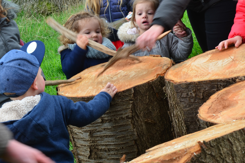Pipa is een van de dochters van de kasteelheer van het kasteelpark in Leut (Maasmechelen). Ze neemt je op sleeptouw langs de favoriete plekjes van haar zes zusjes. Die zusjes zetten de kinderen maar al te graag aan tot dansen, rijmen, muziek maken, knutselen en kriebelbeestjes bestuderen. Ik liet ook ‘voelbomen’ en een bomendrumstel maken voor nog meer fun! Ook heerlijk om te zien, was dat kinderen niet veel nodig hebben om in de natuur te spelen. Er werd in bomen geklauterd, uitgelaten gerend en het was zelfs aanschuiven om over een dode boomstam te lopen. Wie zei daar dat kinderen niet meer van buitenspelen houden?!