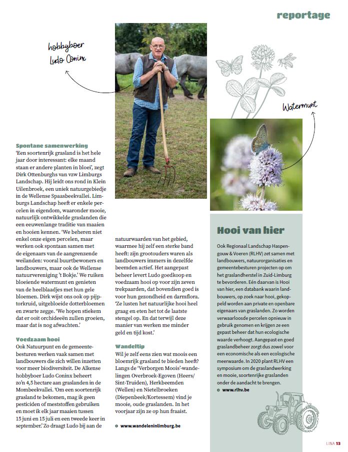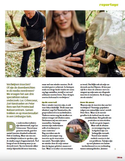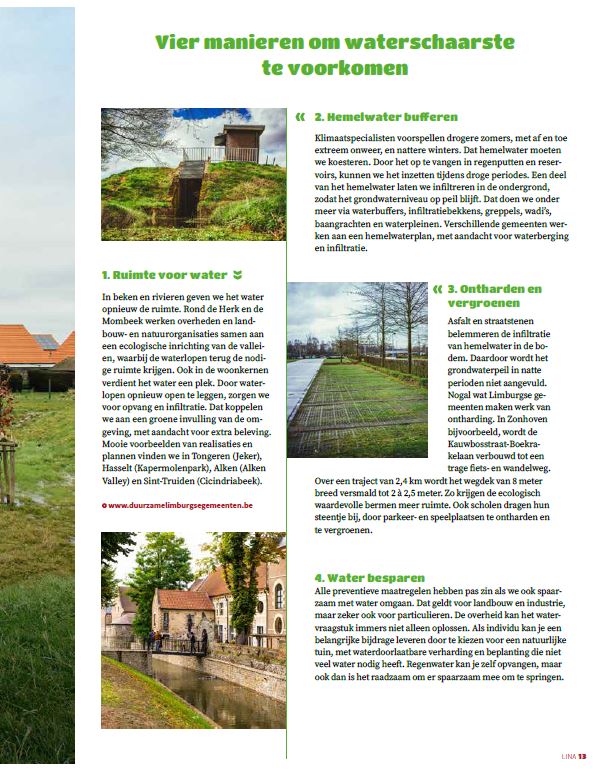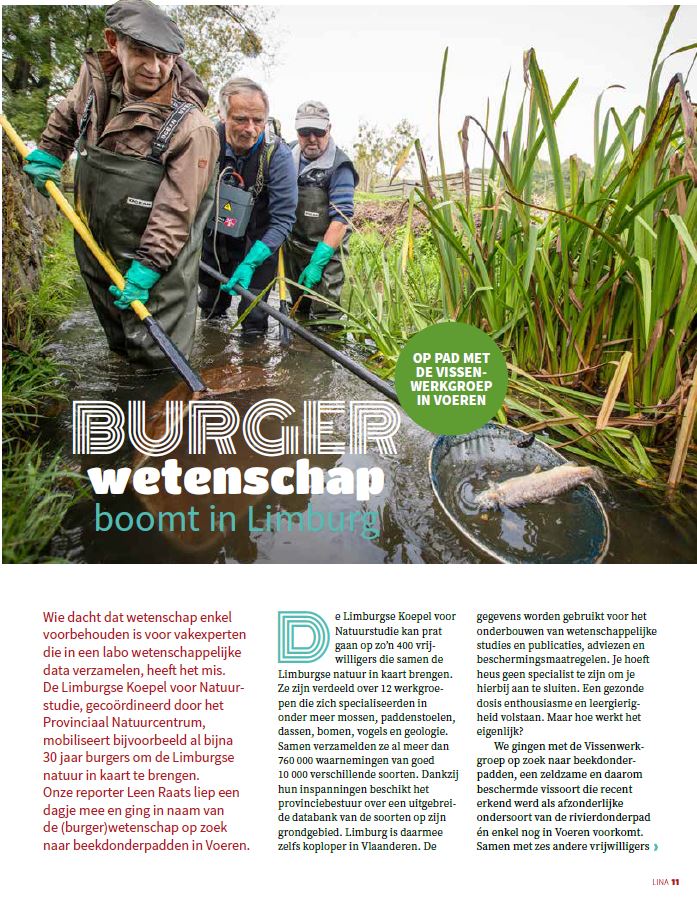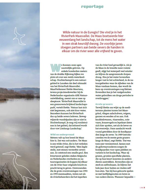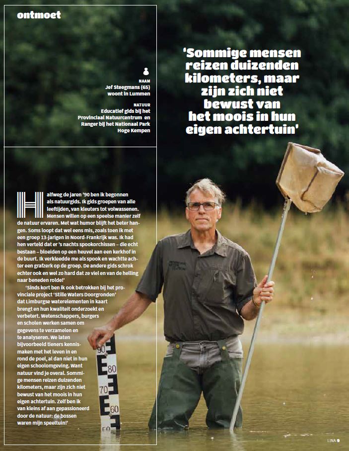 Regelmatig schrijf ik teksten voor het Limburgse provinciebestuur, afdeling milieu en natuur, waaronder gelegenheidspublicaties en reportages voor hun driemaandelijks magazine LINA. Het gaat om teksten rond natuur, klimaat en milieu, drie thema’s die me nauw aan het hart liggen.