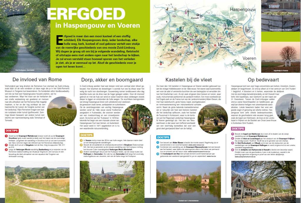Al enkele jaren schrijf ik regelmatig teksten voor het Regionaal Landschap Haspengouw en Voeren. Zo verzorgde ik de copy voor hun nieuwe site. Daarnaast schrijf ik ook teksten voor allerhande publicaties, zoals hun landschapskrant, folders, bepaalde infoborden en gelegenheidspublicaties.