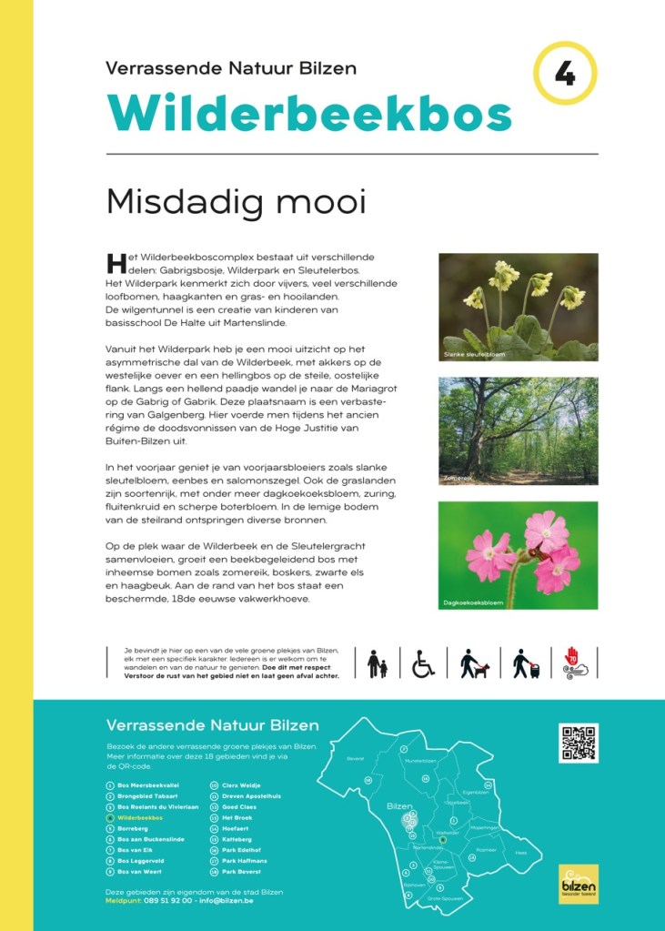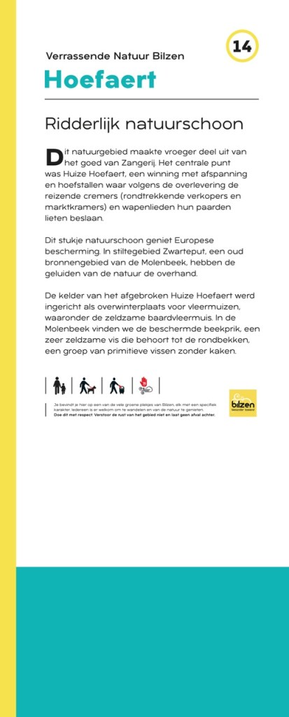 Bilzen is bijzonder rijk aan bossen, natuurgebieden en parken. Op vraag van Regionaal Landschap Haspengouw en Voeren en de stad Bilzen schreef ik de teksten voor infoborden voor aan een 20-tal van die groene oases. Luc Schreurs goot alles in een strakke lay-out.
