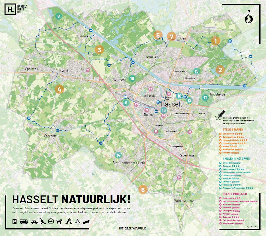 Vandaag viel hier de Nieuwe Hasselaar in de brievenbus, samen met een plan waarop alle groengebiedjes van Hasselt staan aangeduid. In opdracht van Regionaal Landschap Haspengouw en Voeren en Stad Hasselt mocht ik de teksten voor deze publicatie schrijven. Wedden dat er leuke plekjes tussen zitten die je nog niet kende?
