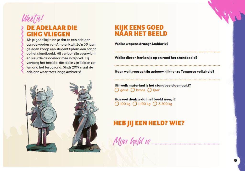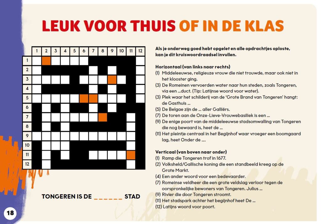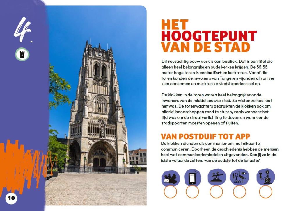 Met deze zoek- en doetocht mikken Toerisme en Erfgoed Tongeren op kinderen van 9 tot 12 jaar. De brochure is er in de eerste plaats voor klassen. Op een speelse manier leren de kinderen heel wat bij tijdens hun tocht door de oudste stad van Vlaanderen. Hun kennis en waarnemingsvermogen worden op de proef gesteld, maar we zetten ze ook aan tot kritisch nadenken. Waar mogelijk, maakten we de link van het verleden naar het heden en de toekomst.