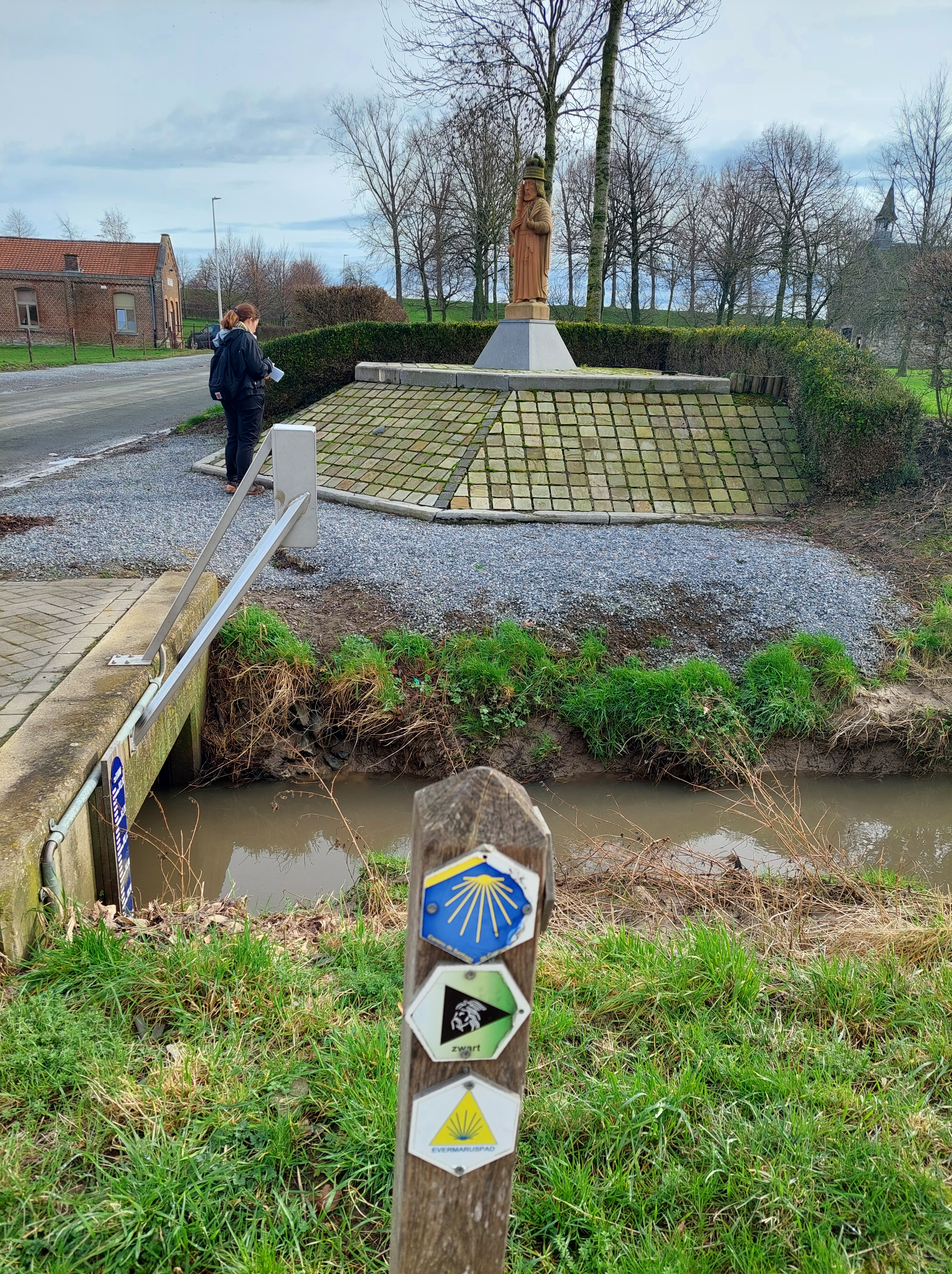Zoals zo vaak bij dit soort opdrachten, verkende ik eerst de route en maakte onderweg notities en foto’s. Zo leer ik het terrein goed kennen, kan ik mooie stopplekjes uitkiezen en doe ik ontdekkingen die ik in de teksten en opdrachten kan integreren. Deze route is zo’n 14 km lang, dus dat was heel wat verkenningsplezier! De modder langs de Jeker en op de onverharde paden tussen de meest vruchtbare akkers van Vlaanderen, nam ik er zonder al te veel morren bij.