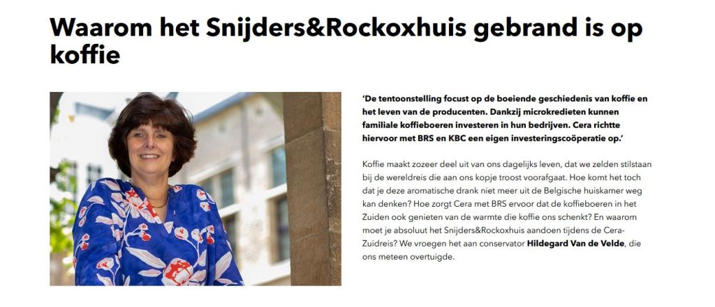 Voor dit project schreef ik de teksten voor de Zuiderse hoek (‘Met een kopje Zuiden’) van de expo Koffiestories in het Snijders&Rockoxhuis, en mocht ik de curatoren van de drie musea interviewen. Die interviews kan je hieronder nalezen.